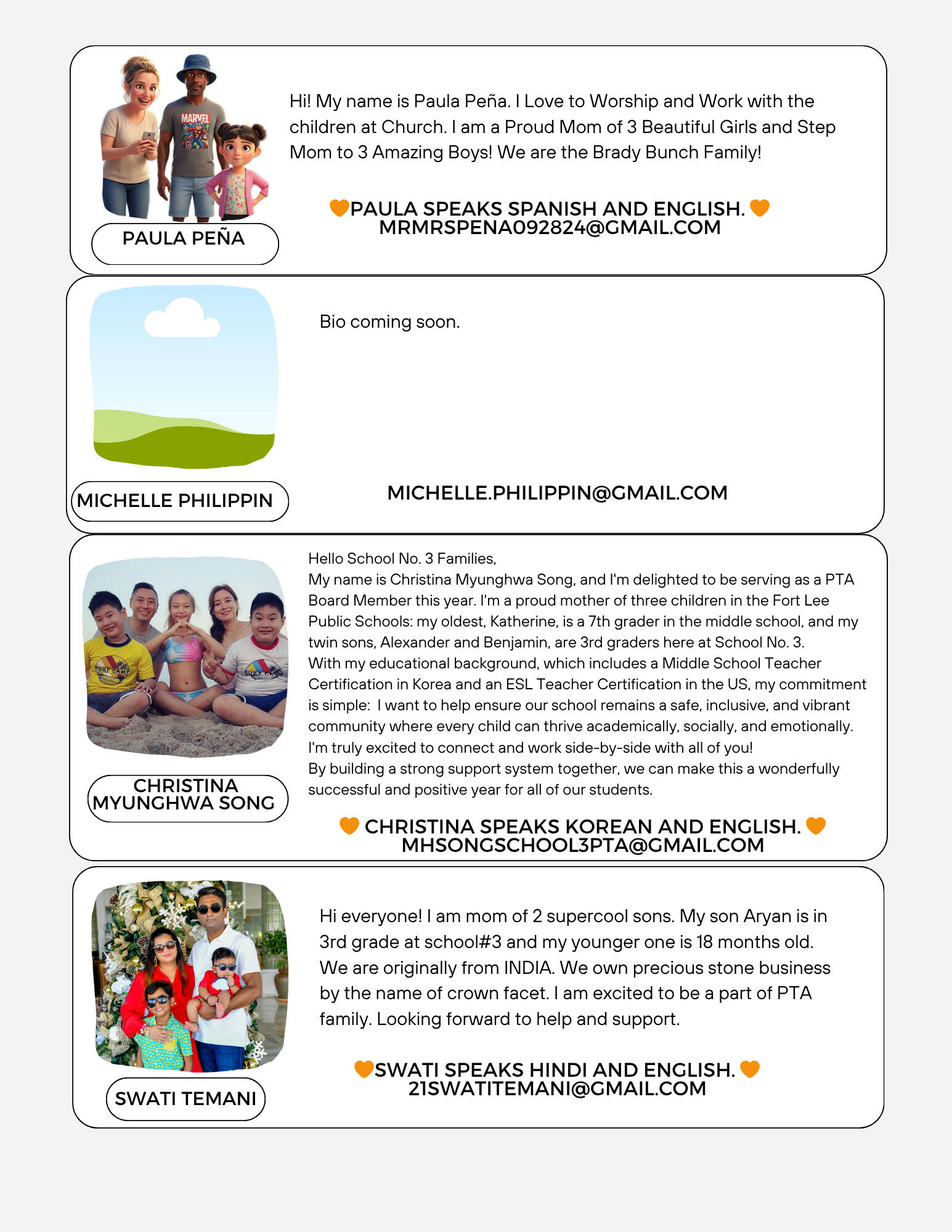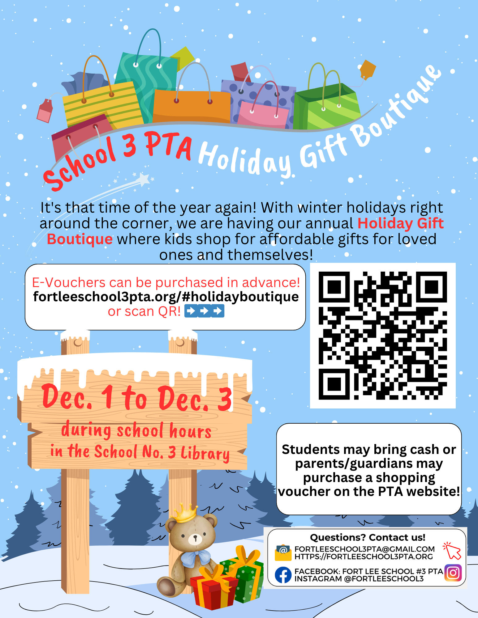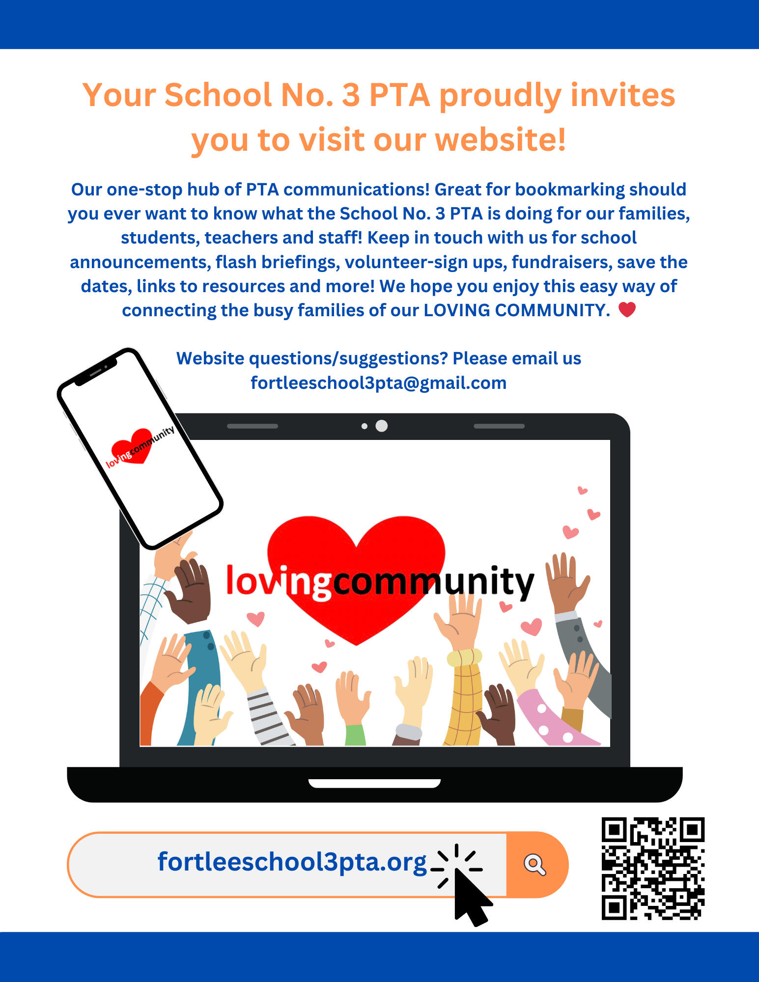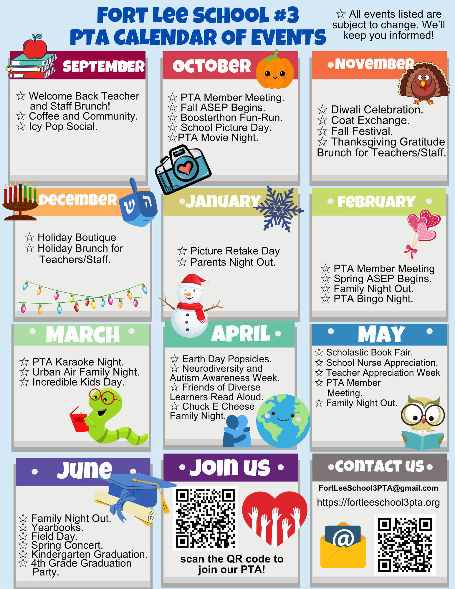 2405 2nd Street, Fort Lee NJ 07024We are a non-profit, fully-incorporated, 501(c)(3) parent volunteer organization of heart-workers who build a sense of community for all in our School 3 neighborhood. Our mission is to provide year-round, family oriented, educational and cultural events, and advocating for best conditions for our children, teachers, staff and community. Our board is beautifully diverse, and we are committed to equity, diversity and inclusion in our organization.Want to contact us? Please email [email protected]! ❤️