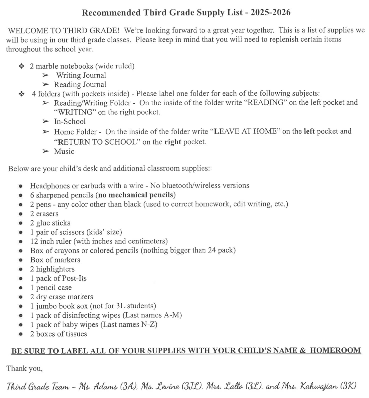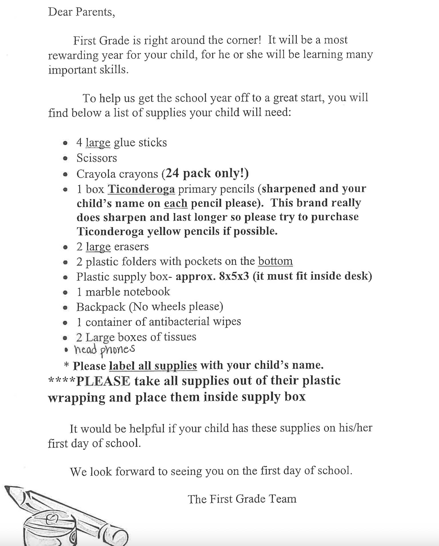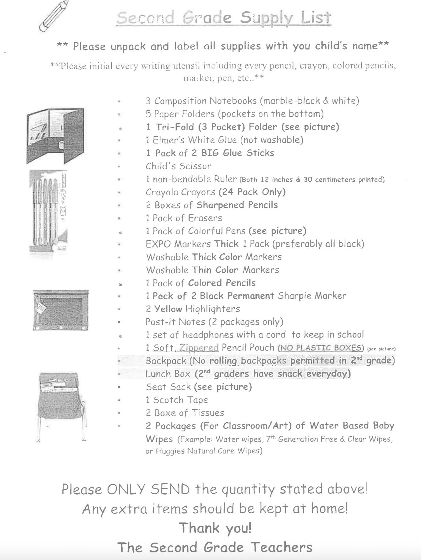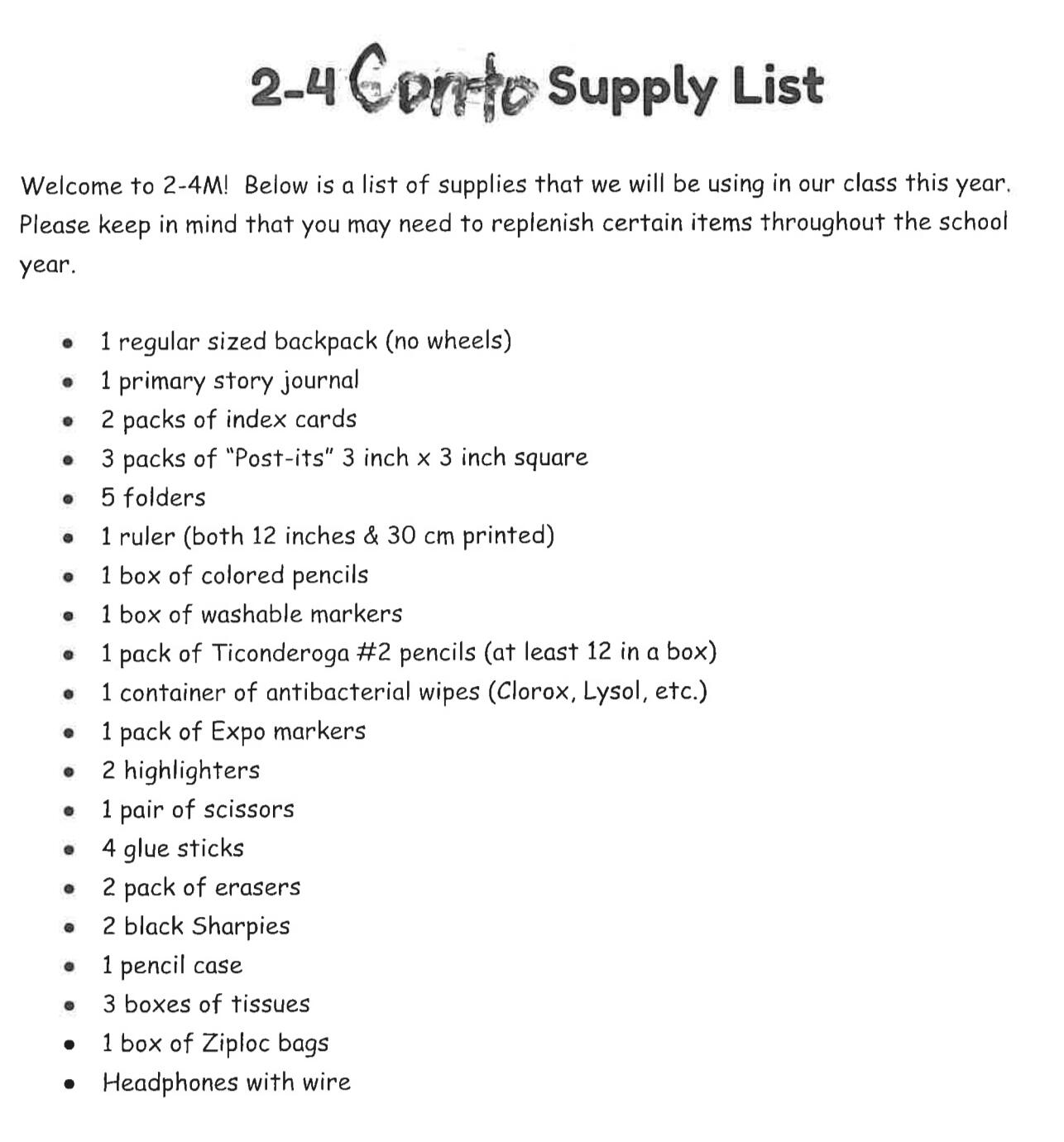 For those of you who prefer to view the original PDF of the supplies list, click on the link above to be redirected to the FLBOE website.