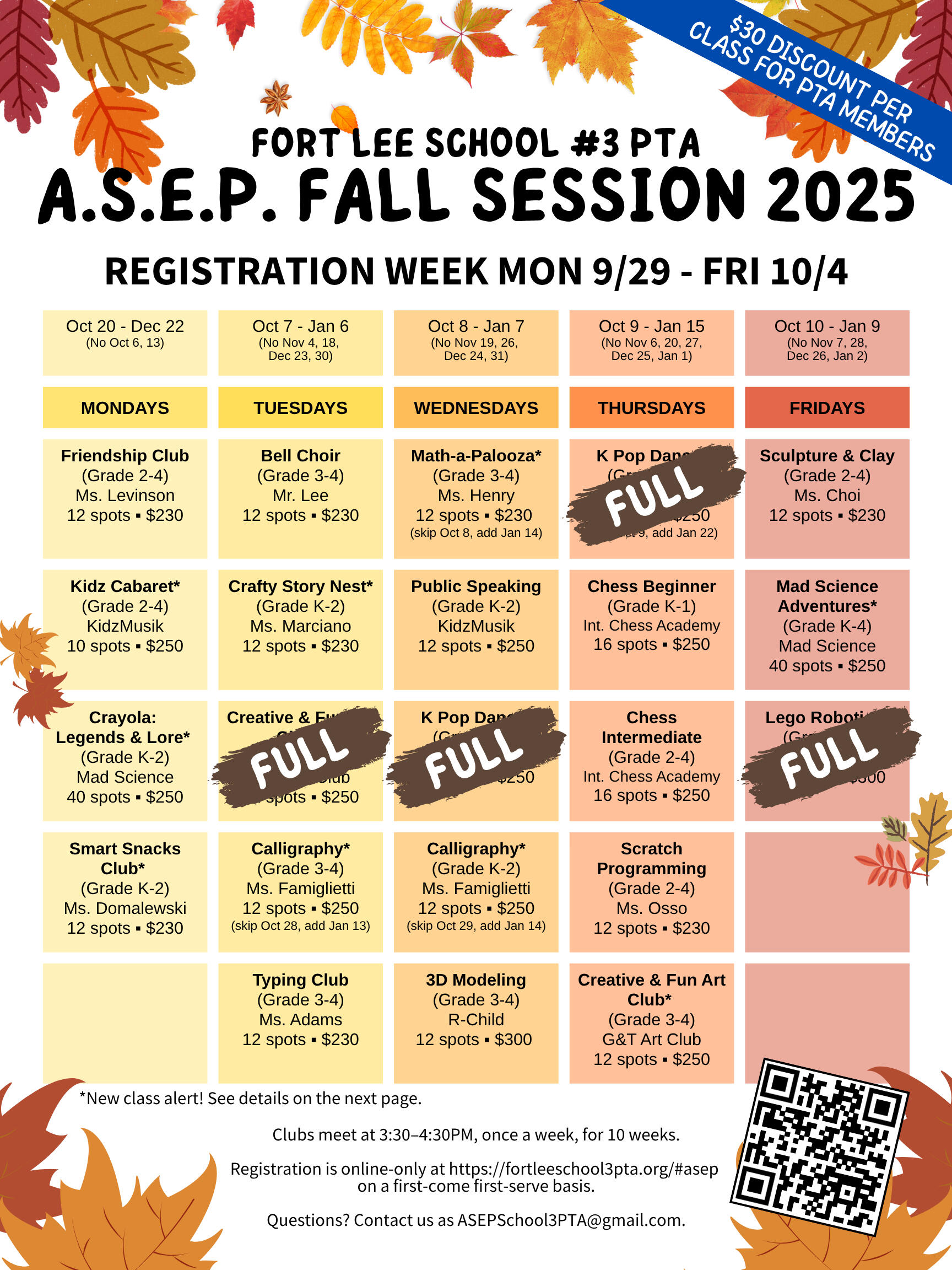 Fall 2025 ASEP Registration will open on Friday, September 29 at 3:00pm EST.